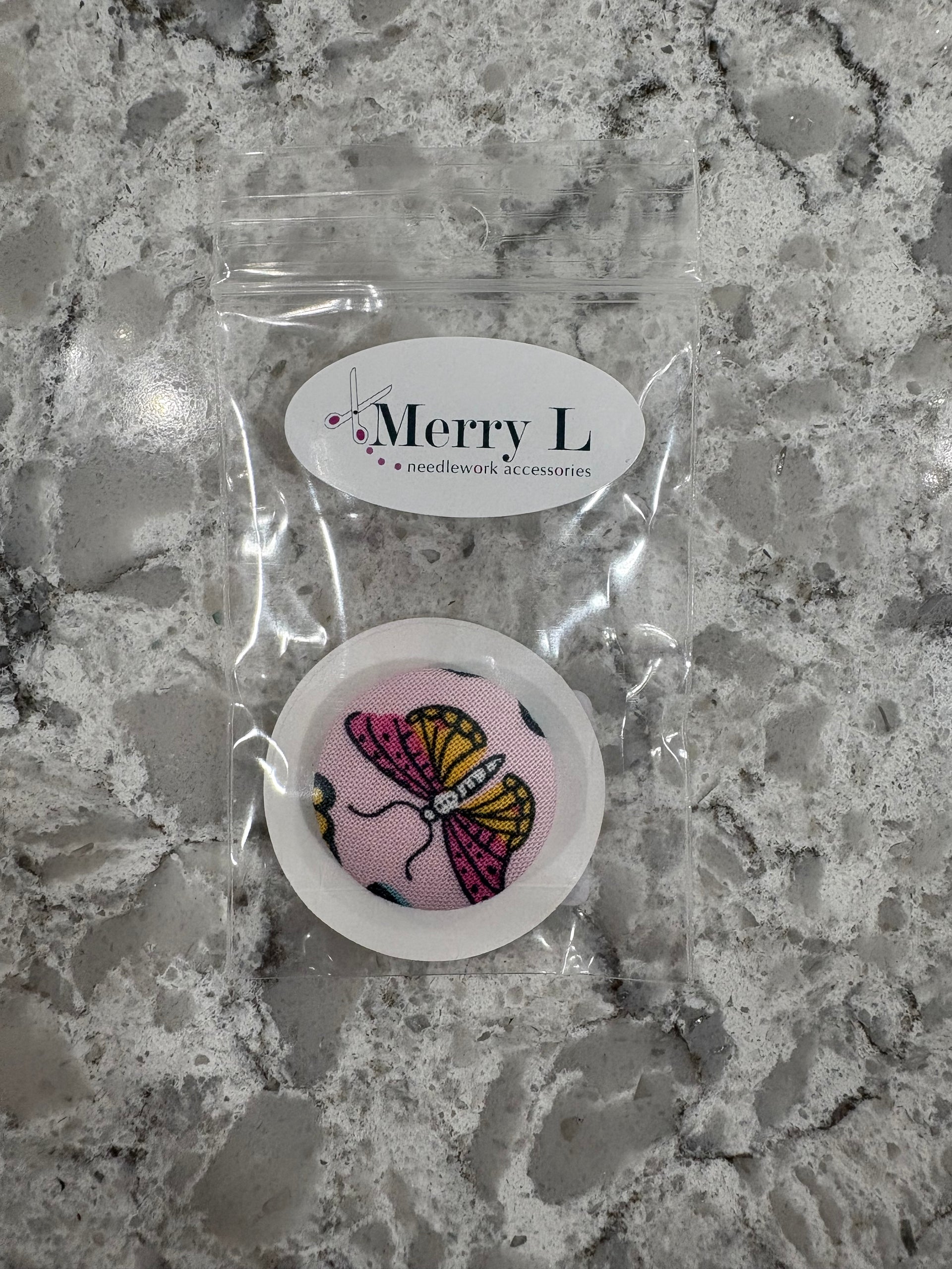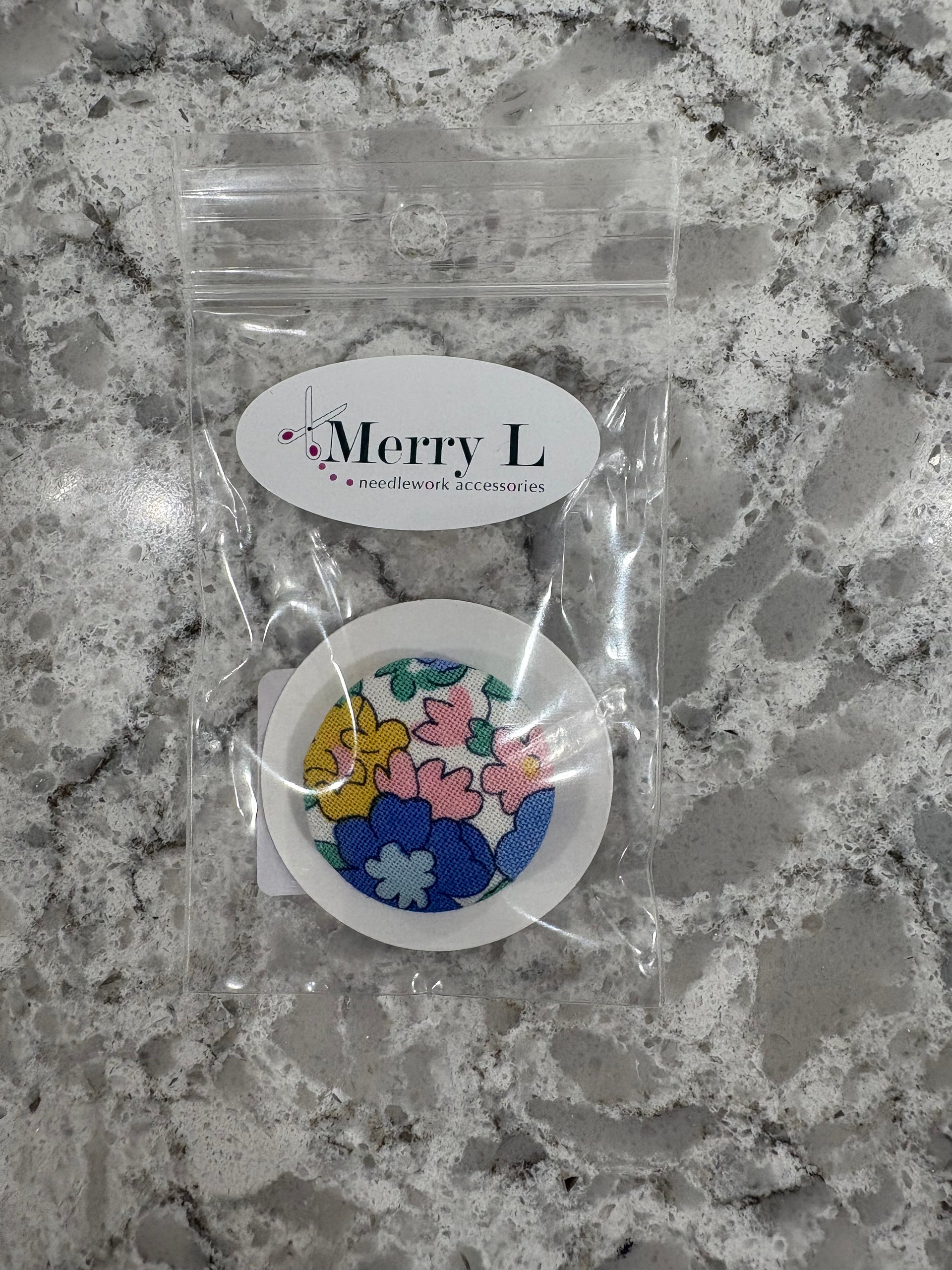 Liberty Fabric Covered Button Needleminder from Merry L Needlepoint. Designs vary.