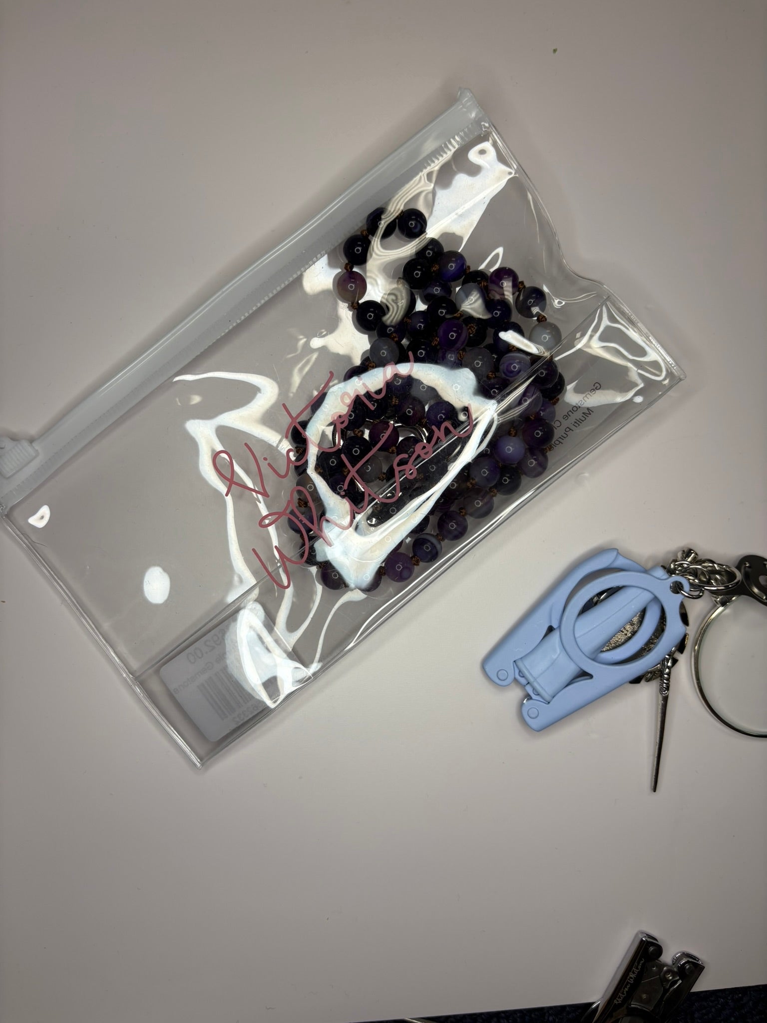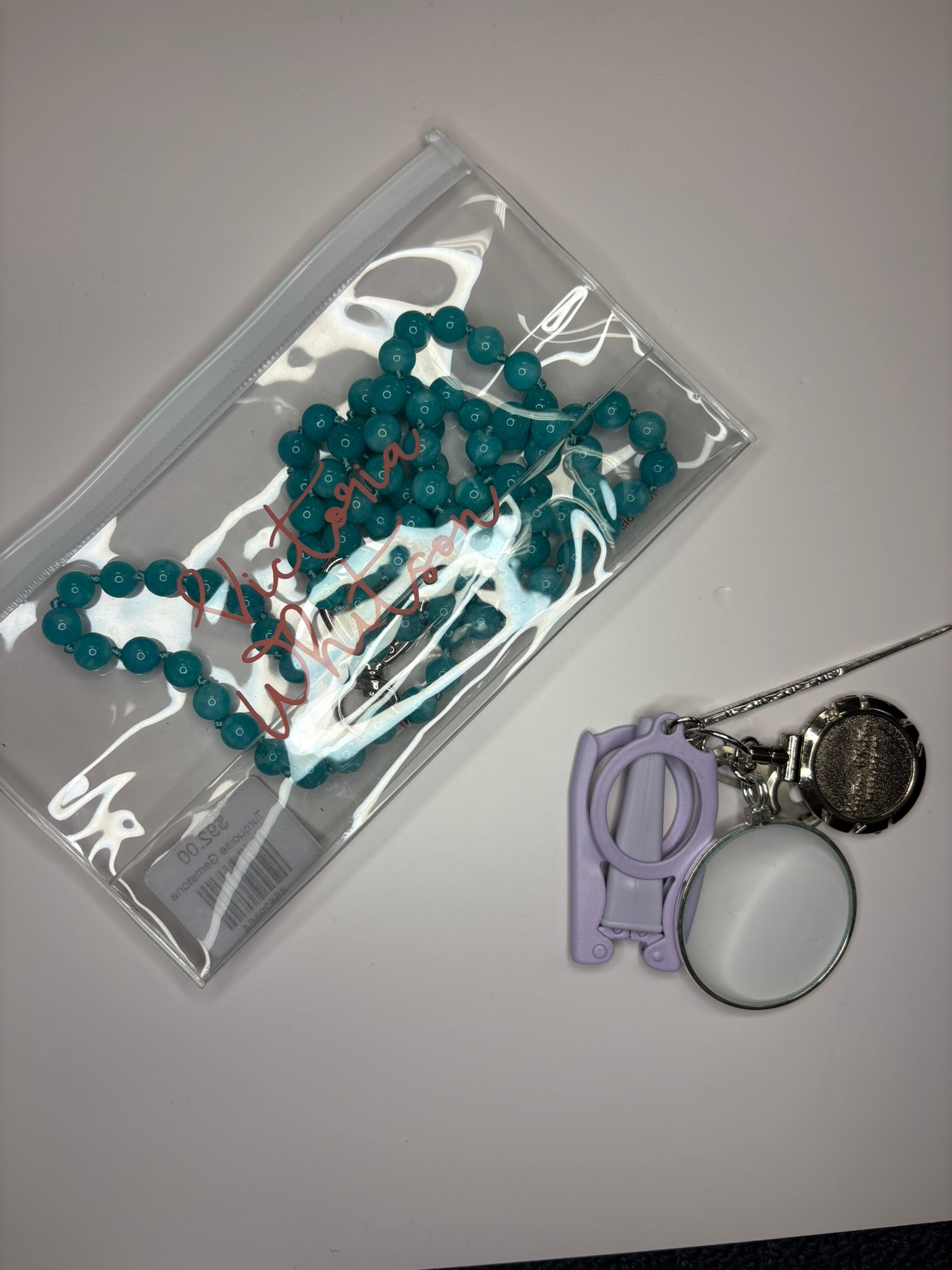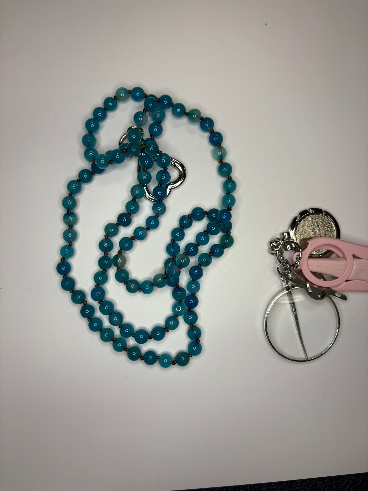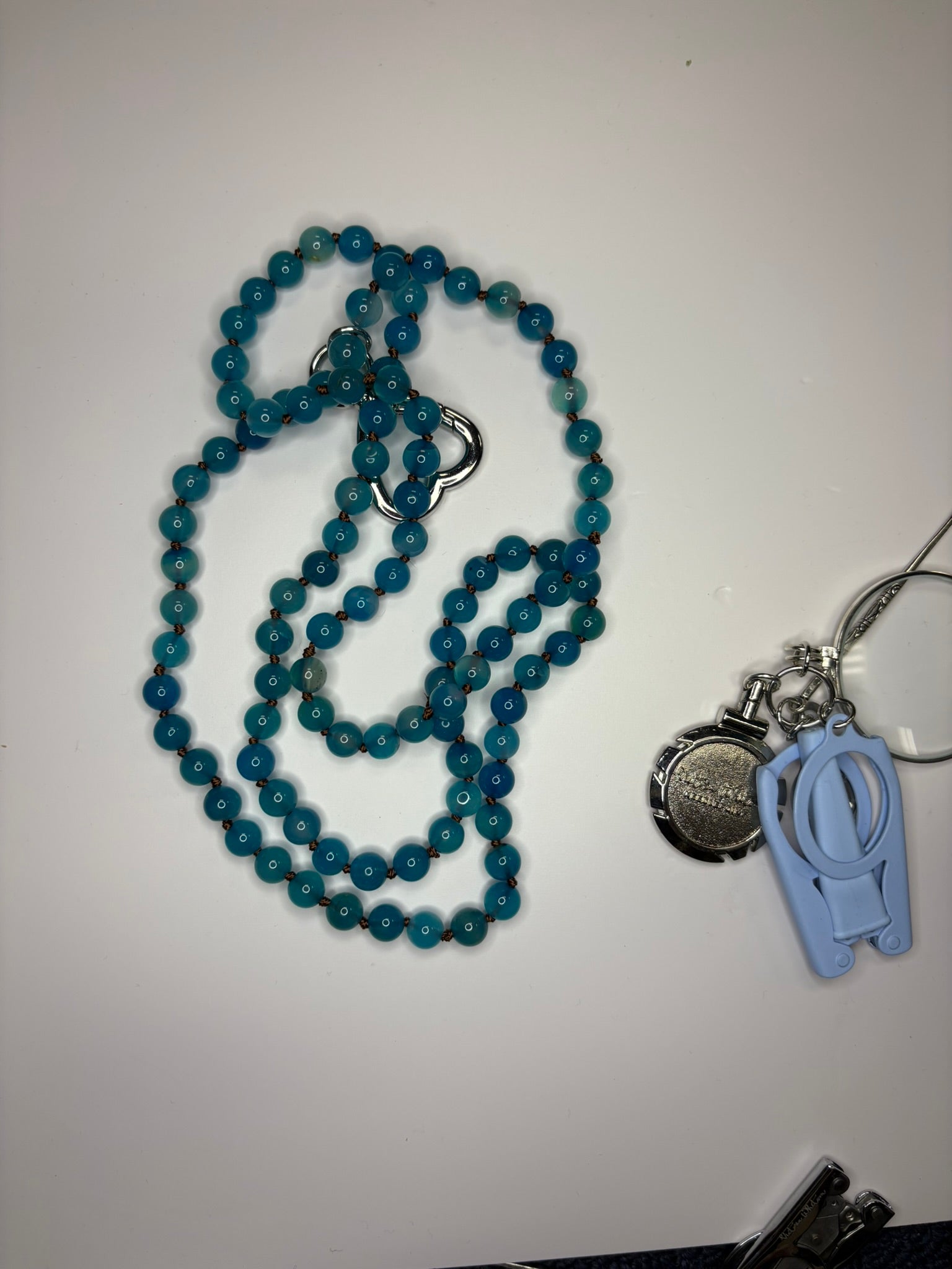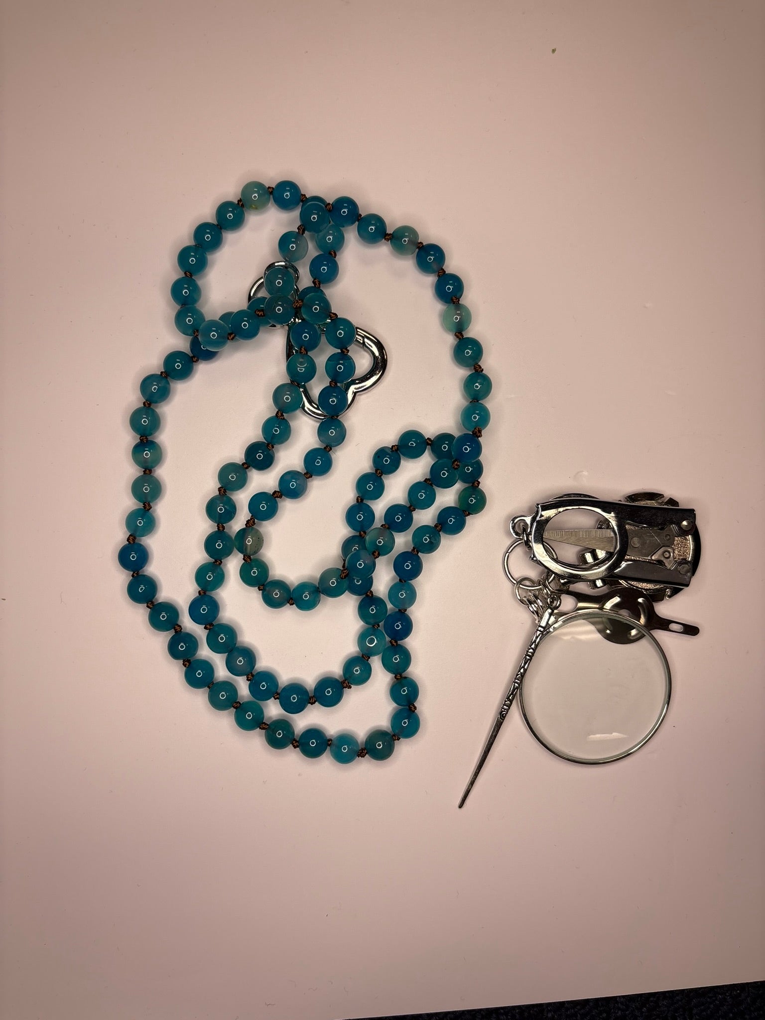 From Victoria Whitson, a necklace to wear while traveling or at a community stitching table with all your tools at arms length.