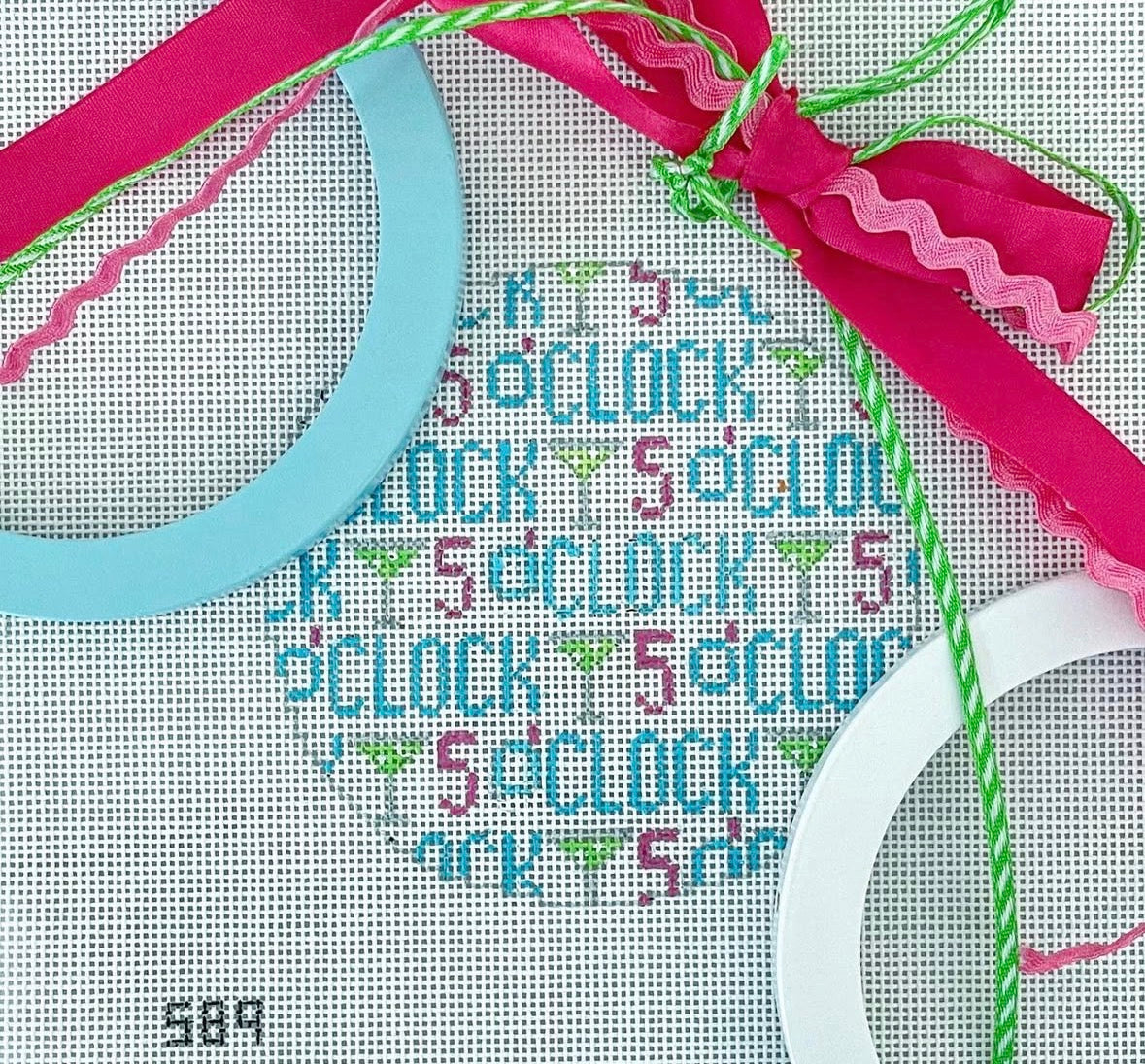 5 O'Clock Round -589 18 mesh Handpainted by Beth Gantz Design Size 4" round