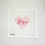 This stitch painted needlepoint elegant heart-shaped canvas features the word "Love" and charming stripes, which is perfect for Valentine’s Day or any occasion where you want to share affection.Â