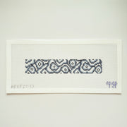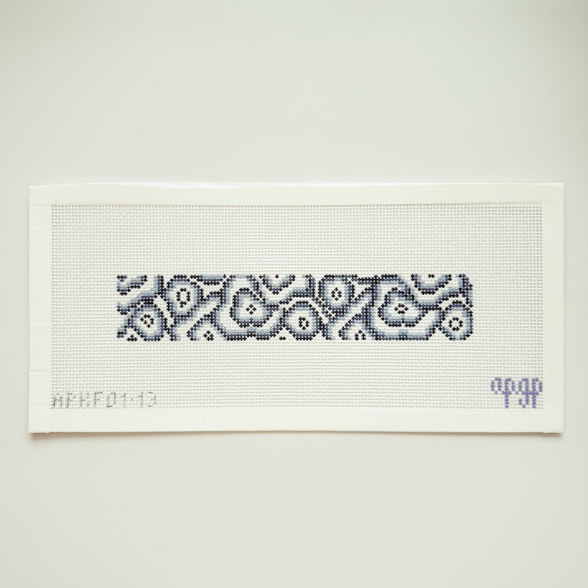 This is a stitch painted needlepoint canvas featuring a blue geode pattern great for key fobs or cuff bracelets.