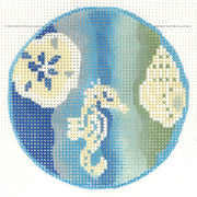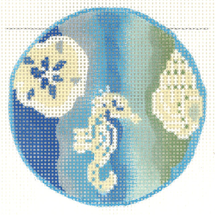 KC-KCBJ20 Water'n Shoes Blues Round, 18 mesh, Handpainted by Kelly Clark for Colonial Needle, Design Size: 3" Round