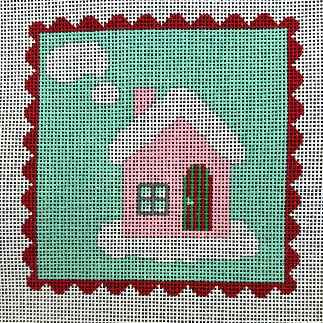 KICH53 Holiday Stamp House, 18 mesh, Handpainted by NDLPT Designs, Design Size: 4 x 4"