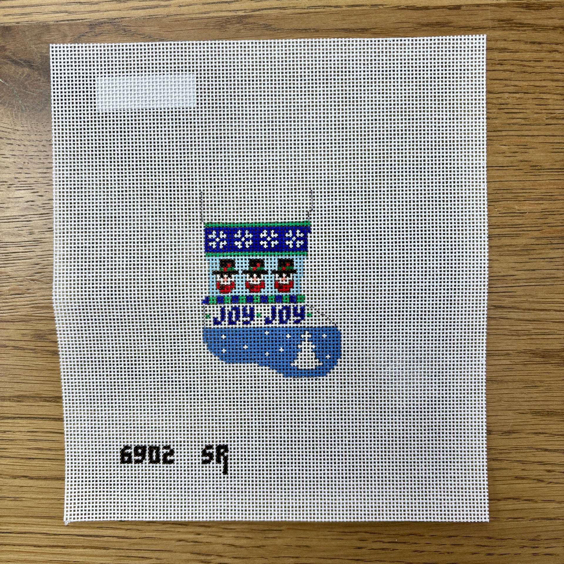 SR6902 Snowman Stripe, Stocking Ornament - TS, 18 mesh, Handpainted by Susan Roberts, Design Size: 3" tall