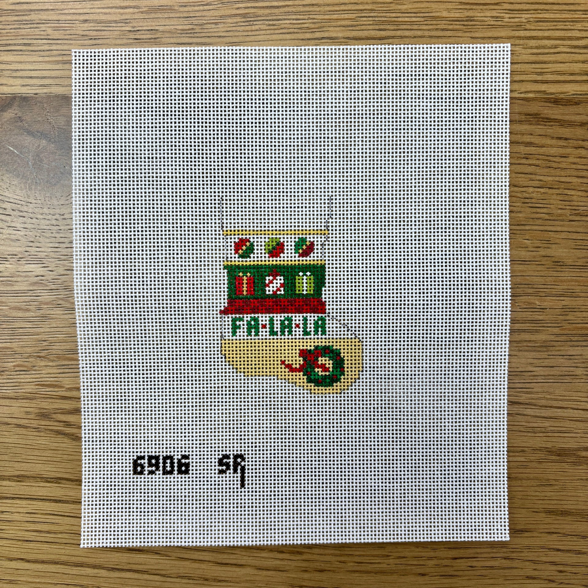 SR6906 Presents Stripe, Stocking Ornament - TS, 18 mesh, Handpainted by Susan Roberts, Design Size: 3" tall