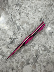 Our woodworker has handcrafted these to feel perfect in your hand. It has just the right taper to lay your threads beautifully.  These are all handmade, so designs may vary slightly from photo.