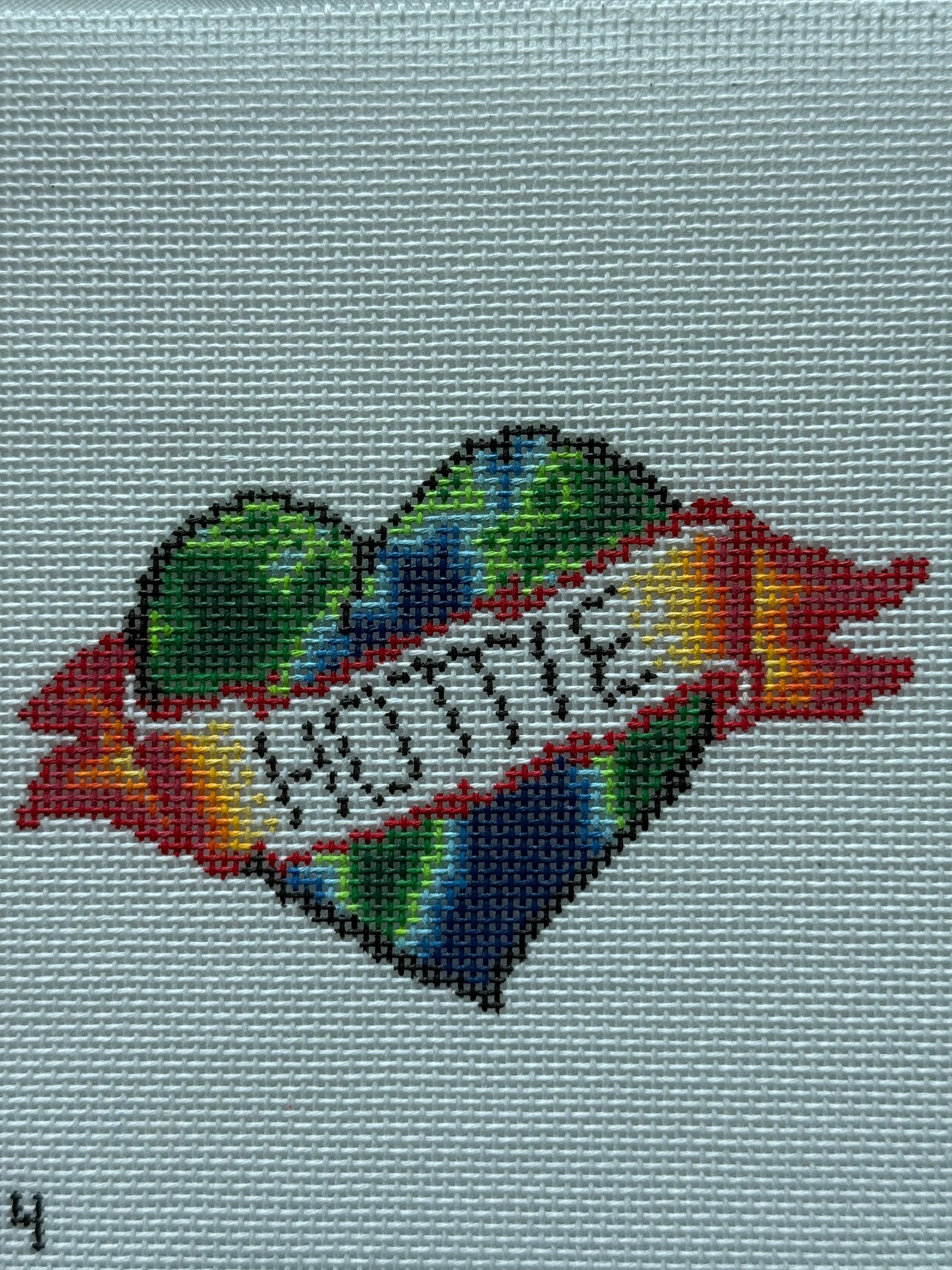 AASO014 Hottie Heart , 18 mesh, Handpainted by Walker's Wholesale, Design Size: 4.5 x 3"
