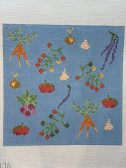 AB-137A In The Garden Pillow , 13 mesh, Handpainted by Alice & Blue, Design Size: 8" square
