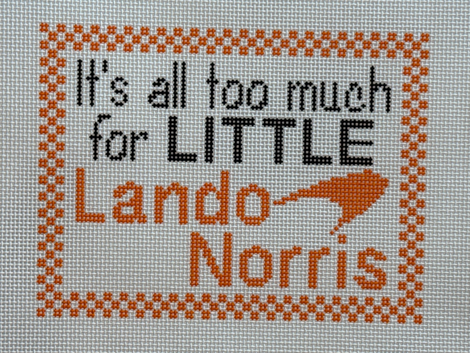 F1 Lando Morris , 13 mesh, Handpainted by Stitching with Stacey, Design Size: 7 x 5.5"