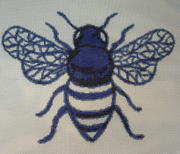 KCD-4570 Blue Bee , 13 mesh, Handpainted by KC Needlepoint Designers, Design Size: 11.5 x 10"
