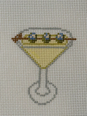 Mini Blue Cheese Olive Martini PP-217 , 18 mesh, Handpainted by Atlantic Blue Canvas, Design Size: 3 x 2.25"