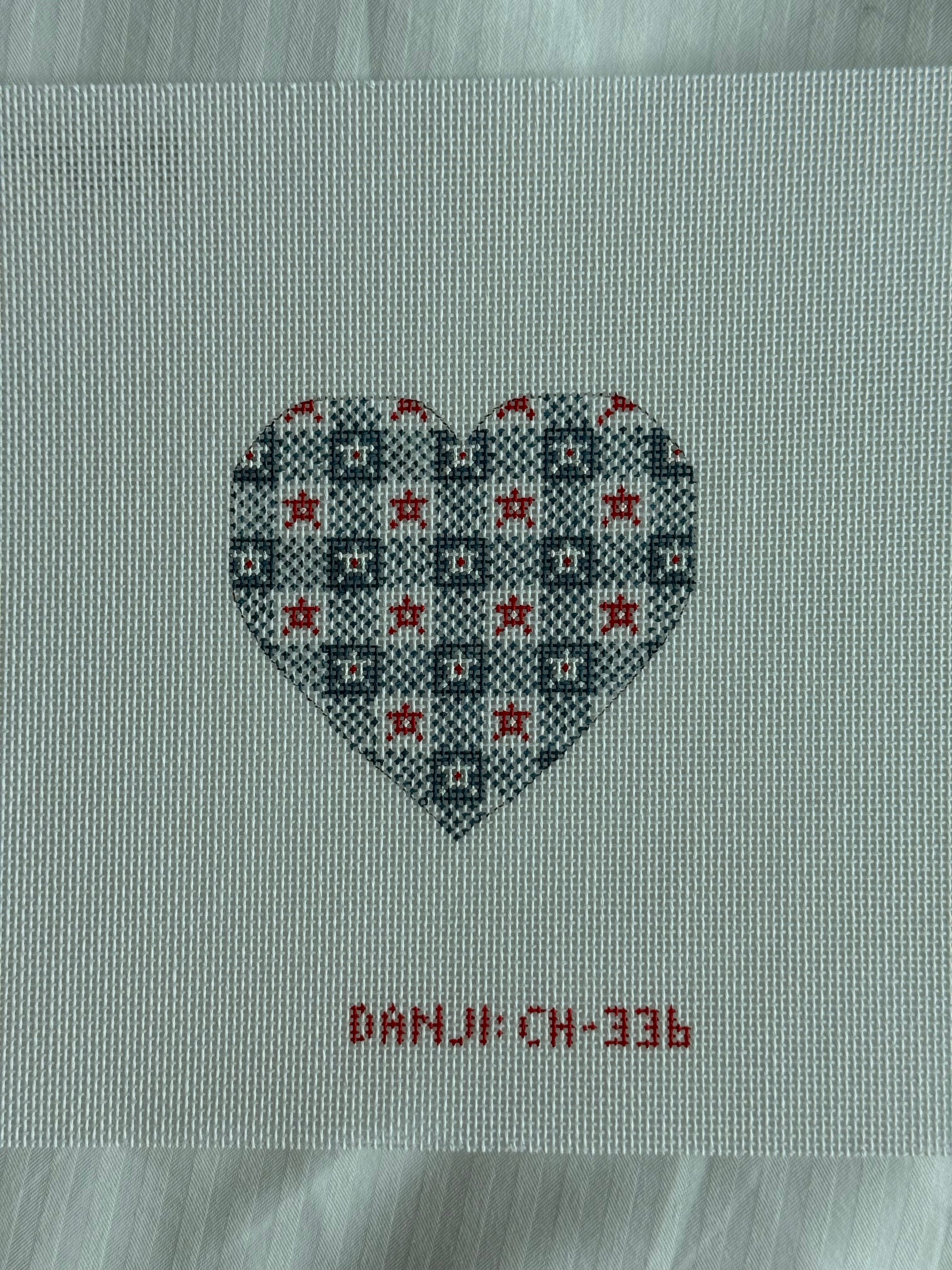 Blue and Red Heart CH-336 - MKT, 18 mesh, Designed by Danji, Design Size: