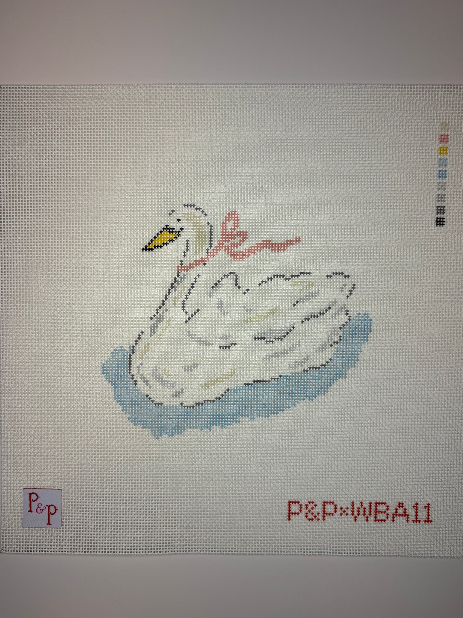 Bow Belle Swan - MKT, 18 mesh, Designed by Penny & Penny, Design Size: 5.25 x 3"