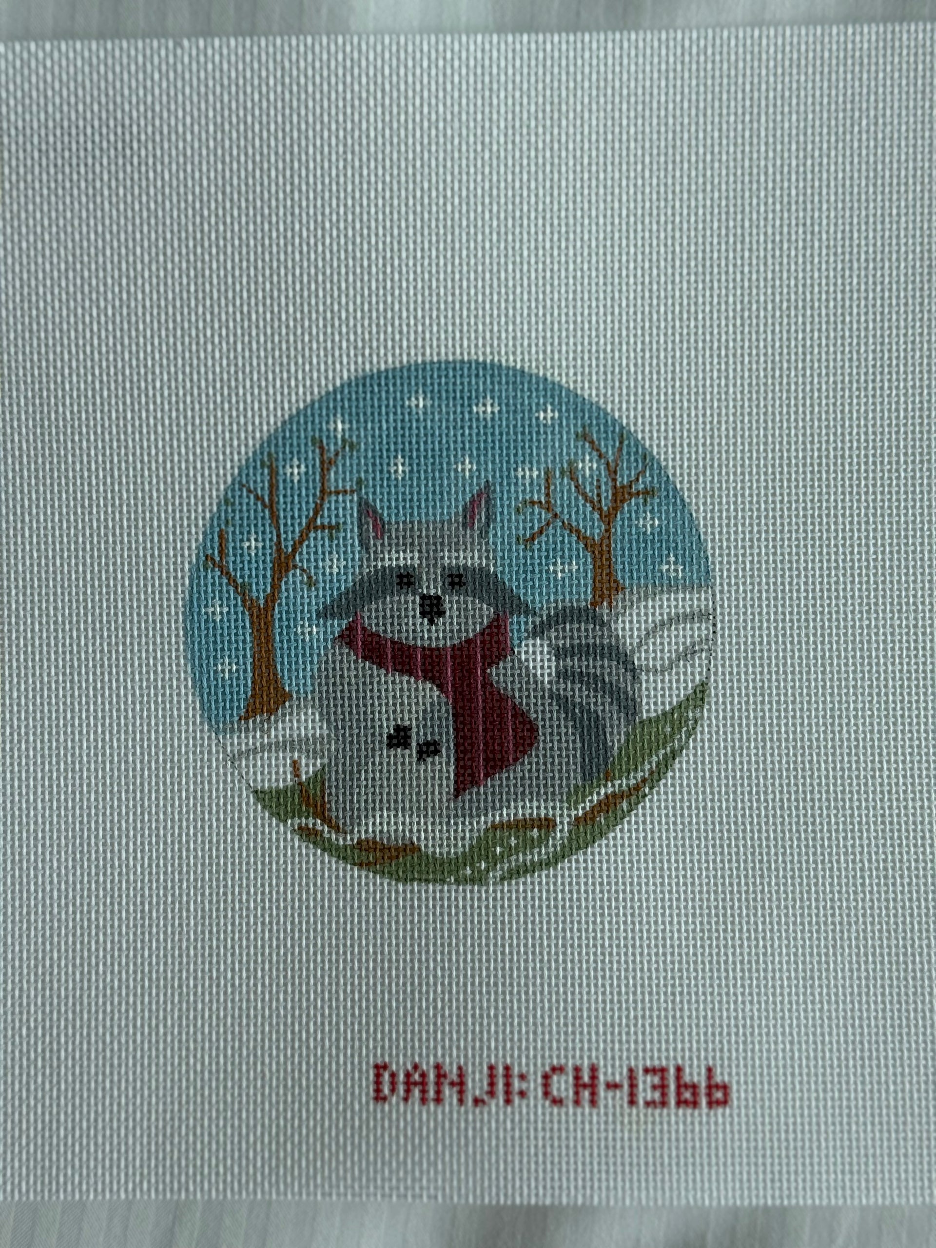 Woodland Creatures Round- Raccoon CH-1366 - MKT, 18 mesh, Designed by Danji, Design Size: