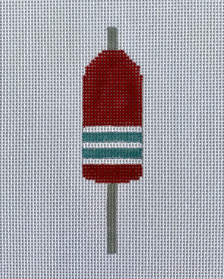 JCB-BR Buoy in Red - TS, 18 mesh, Handpainted by Plum Stitchery, Design Size: 4 x 1"