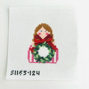 SI165-124 SCT Designs Wreath with Red Bow Angel, 13 mesh, Designed by KC Needlepoint Designers Design Size: 2.25 x 3"