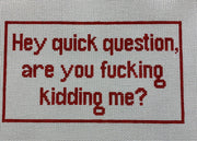 Quick Question, 13 mesh, Handpainted by Needle NOLA, Design Size: 9.5 x 5.25"