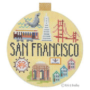 San Francisco Travel Round KB1264, 18 mesh, Designed by Kirk and Bradley for Bradley Needlepoint, Design Size: 4" Round