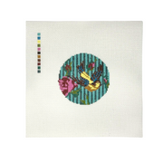 Bird Stripes, 18 mesh, Handpainted by Tew Designs for Stitchtent, Design Size: 3" Round