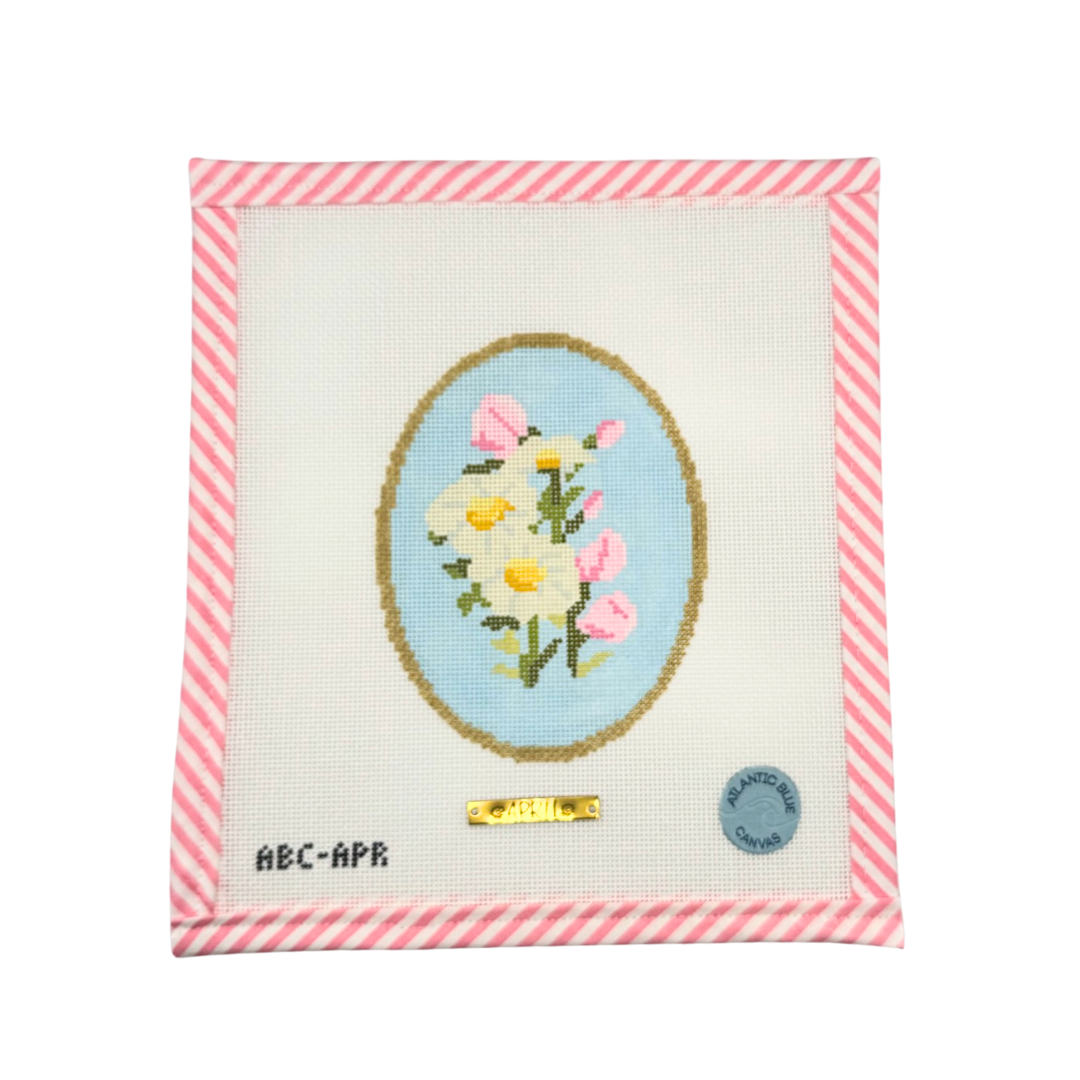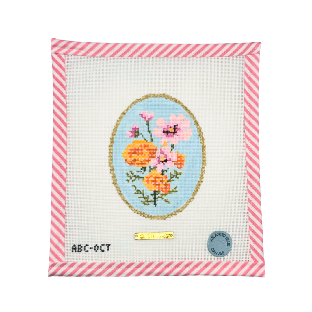 Birth Flowers, 18 mesh, Handpainted by Atlantic Blue Canvas, Design Size: 3.75 x 5"