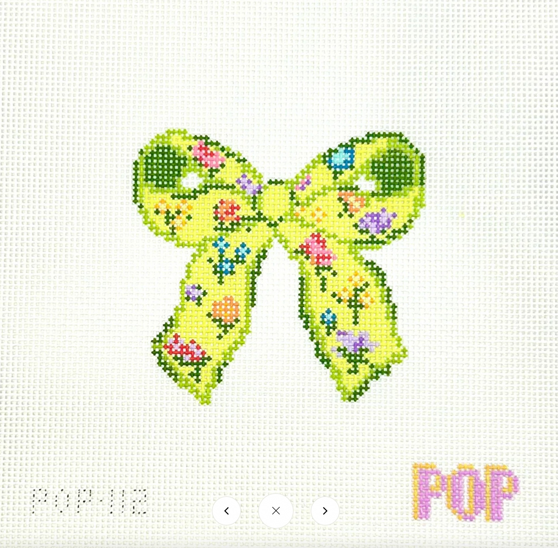 Floral Print Bow - Green POP-112, 13 mesh, Handpainted by POP for Stitch Tent, Design SIze: 4.25 x 4"