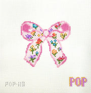 Floral Print Bow - Pink POP-113, 13 mesh, Handpainted by POP for Stitch Tent, Design SIze: 4.25 x 4"