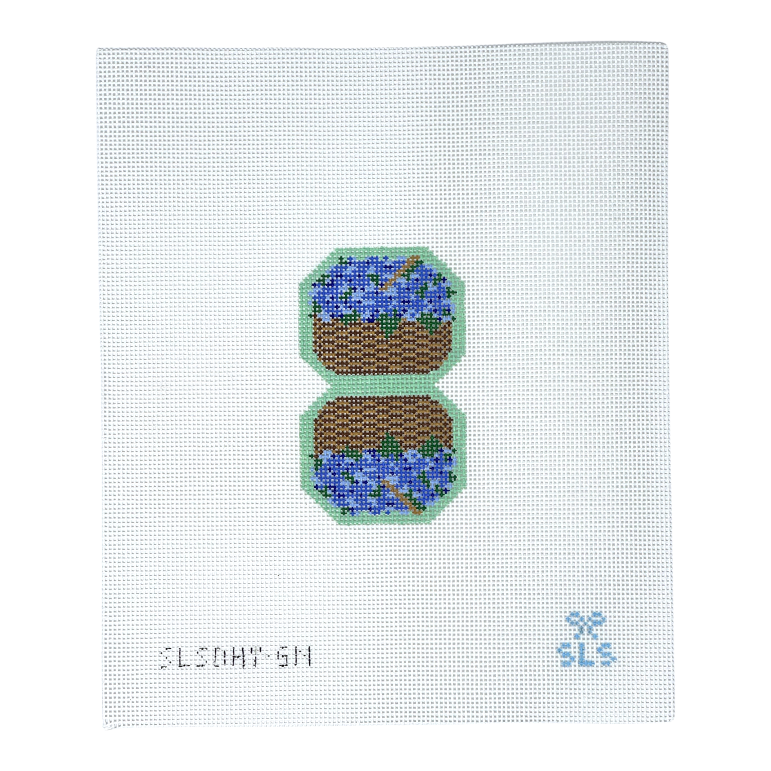 Hydrangea Basket - Double Fob Green, 18 mesh, Handpainted by Stitchtent, Design Size: 3.5 x 2"