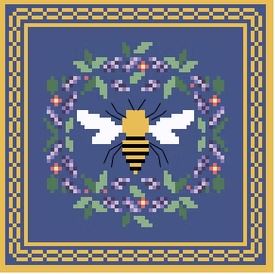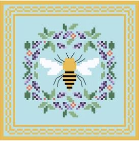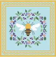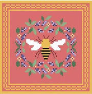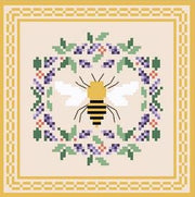 Square Bee Insert, mesh, Handpainted by Funda Scully, Design Size: 4 x 4"