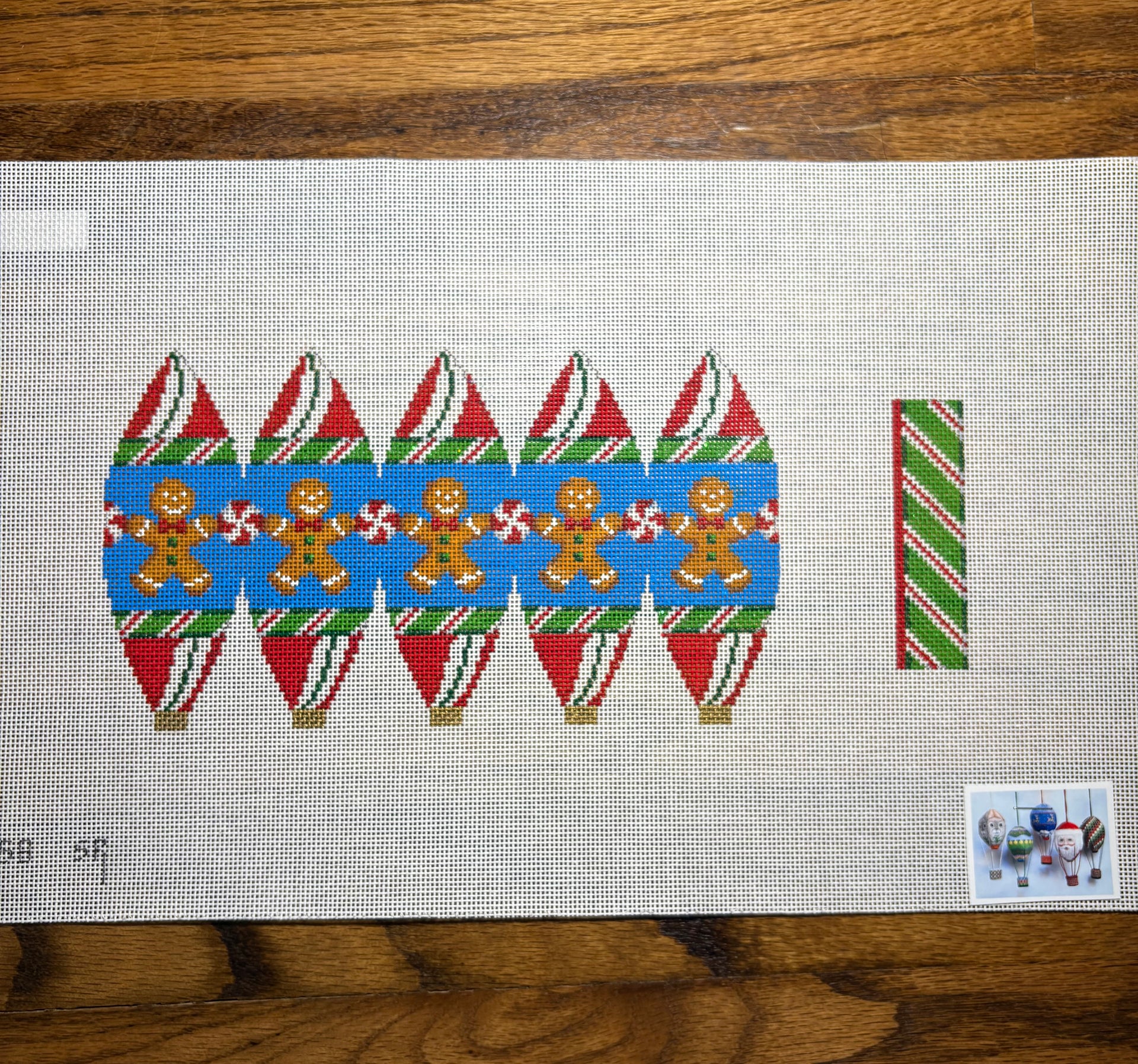 5258 Gingerbread Men Hot Air Balloon , 18 mesh, Handpainted by Susan Roberts, Design Size: 11 x 5"