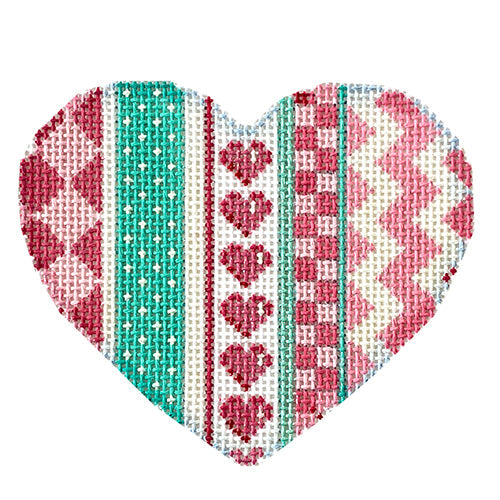 HE-848 Harlequin/Hearts/Chevron Heart 18 mesh Handpainted by Associated Talents Design Size: 3.5 x 3"