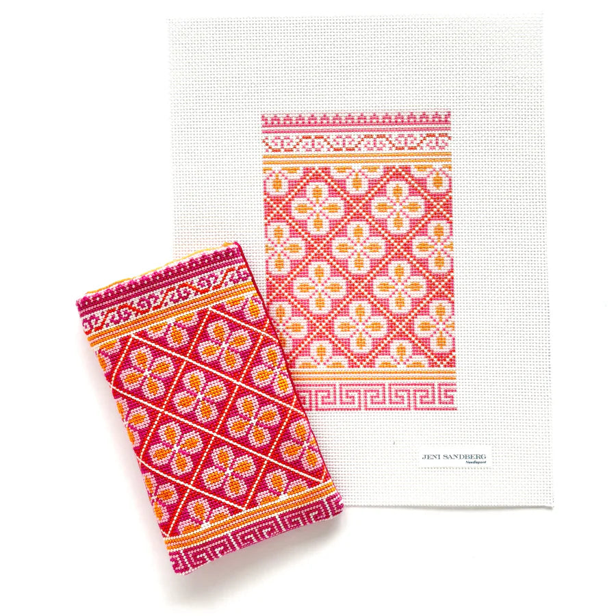 Hewitt Sunglasses Case - Pink and Orange JS-110C, 13 mesh, Handpainted by Jeni Sandberg Needlepoint, Design Size: 7.5 x 4.5"