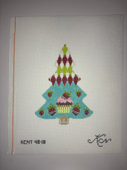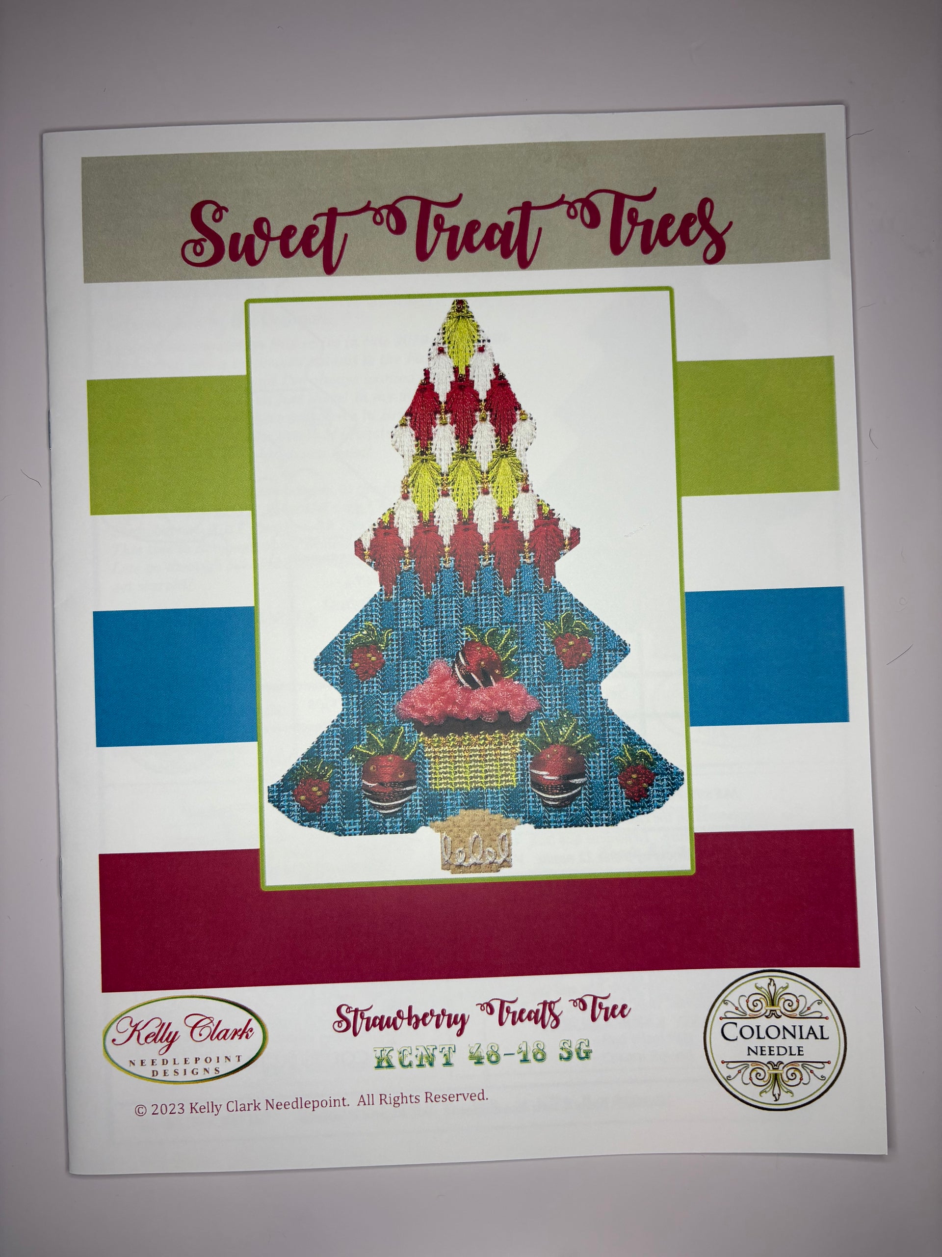 KC-KCNT48-18 Strawberry Treats Tree and Stitch Guide , 18 mesh, Handpainted by Kelly Clark for Colonial Needle, Design Size: 4.5 x 6.125"