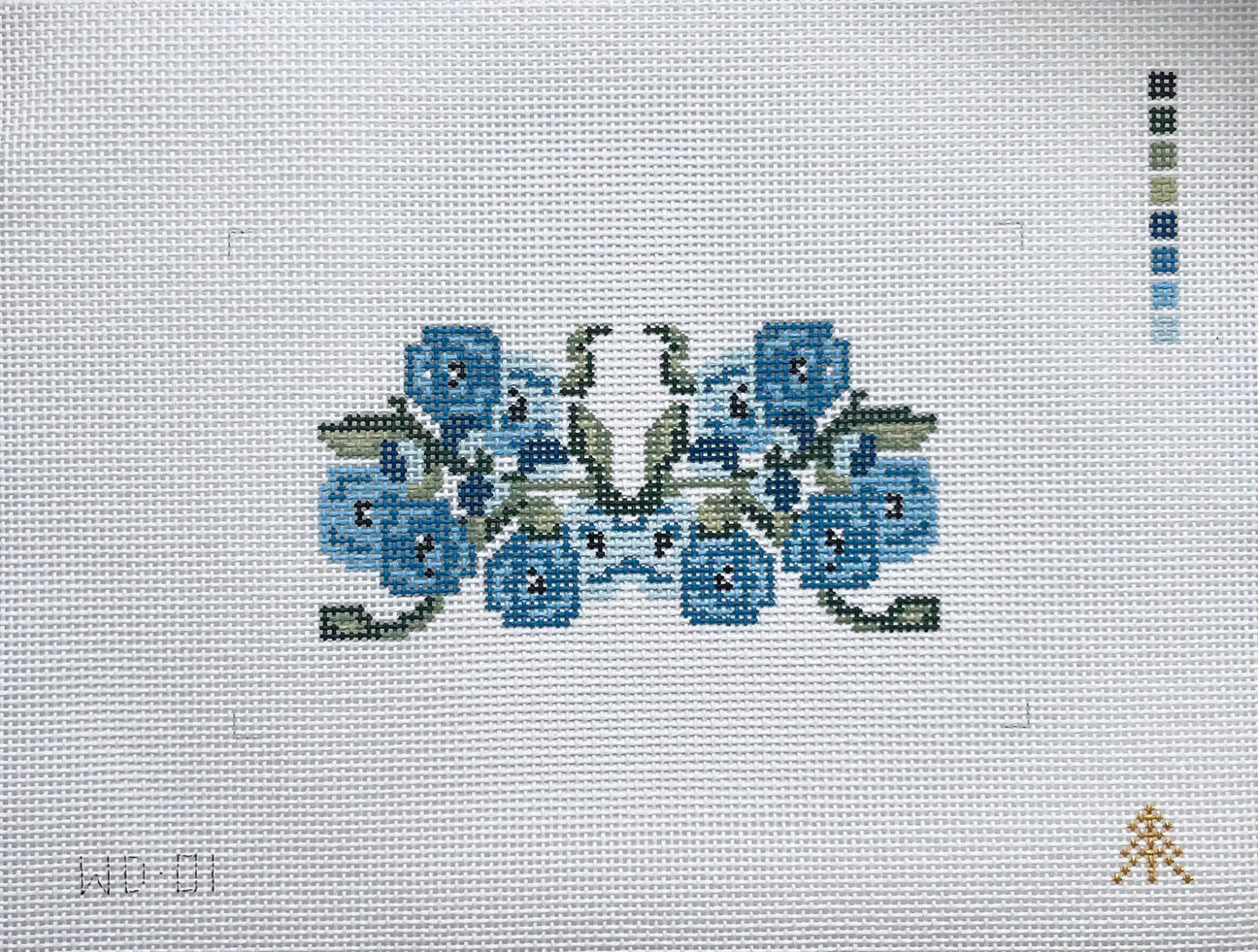 WD-01 Blue Floral Acrylic Purse Insert, 13 mesh, Handpainted by Evergreen Needlepoint, Design Size: