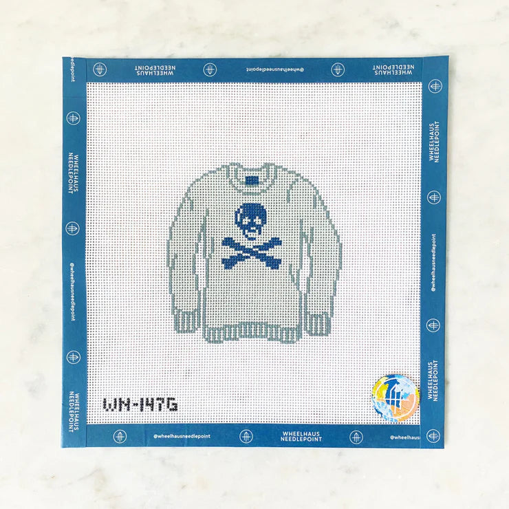 Jolly Roger Sweater in Grey, 18 mesh, Handpainted by Wheelhaus Needlepoint, Design Size: 3.5 x 3.5"