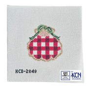 Red Gingham Gilded Scallop KCD2848, 13 mesh, Handpainted by KCN Designers, Design Size: 4 x 4.25"