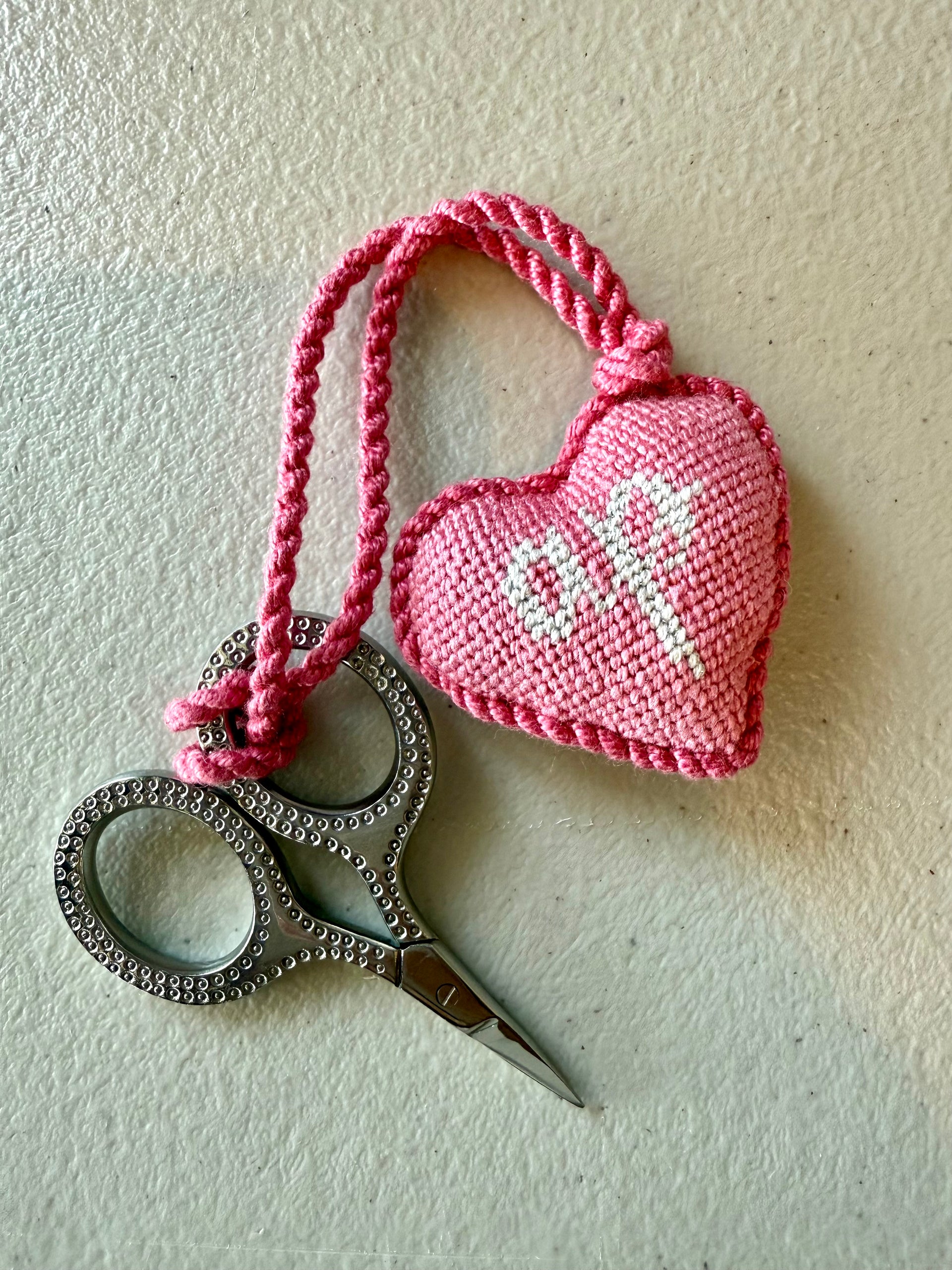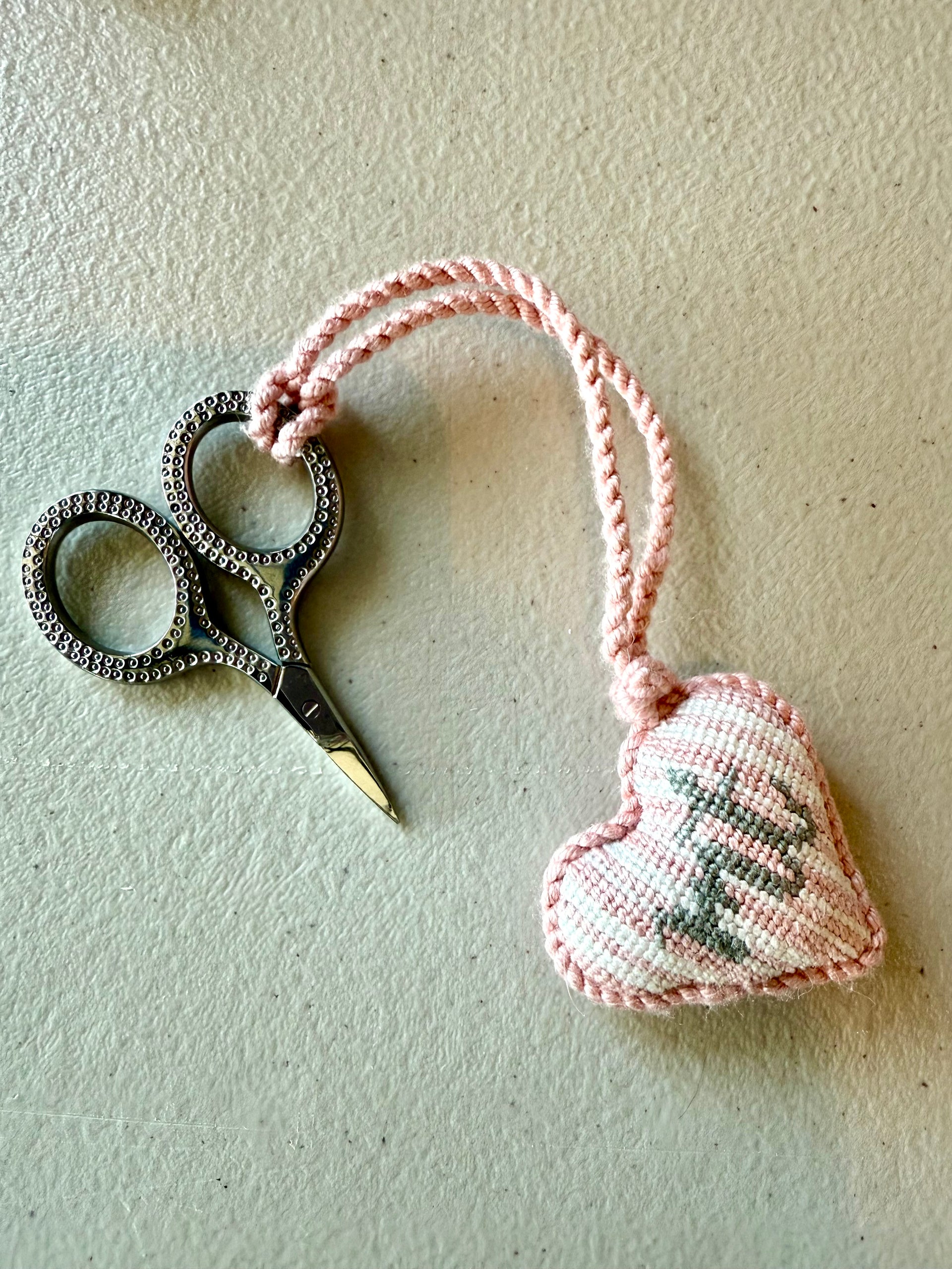 2 Letter Initials Scissor Fob on 18 mesh canvas from Taylor Studios, exclusively distributed by The Wool and The Floss.