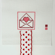 Romance Bookmark BMM with included Vintage Ribbon, 18 mesh, Handpainted by The Curious Cowgirl, Design Size: 1.75" Square. Ribbon may vary.
