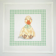 APBA15 - Duck Lovey with Green Gingham Border, 13 mesh, Handpainted by A Poore Girl Paints, Design Size: 10 x 10"