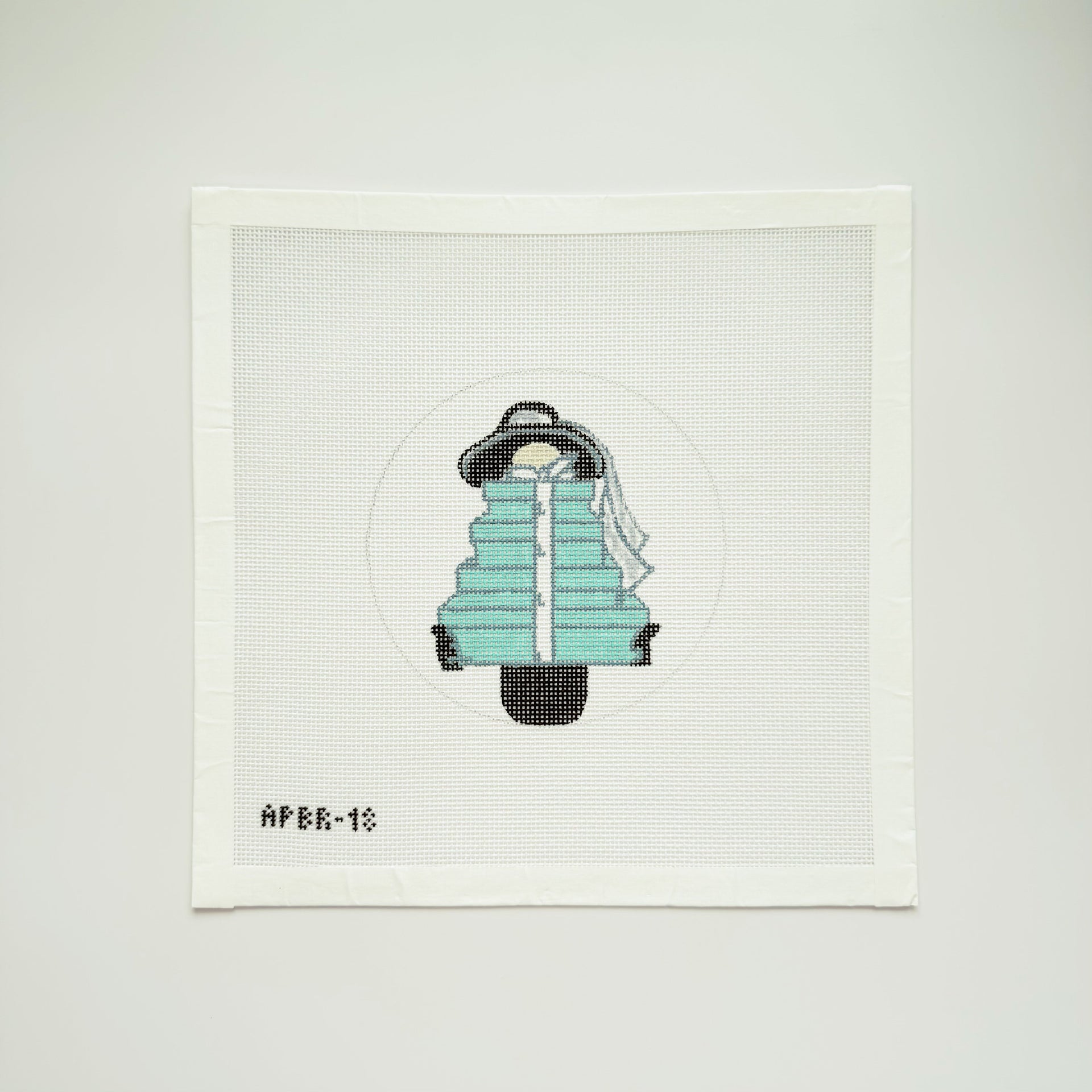 This stitch painted needlepoint canvas features art inspired by the iconic style of Audrey Hepburn in Breakfast at Tiffany's.Â