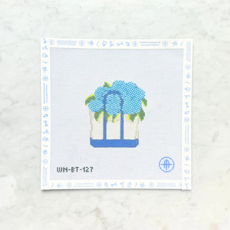Blooming Hydrangeas Tote, 18 mesh, Handpainted by Wheelhaus Needlepoint, Design Size: 3.5 x 3.75"