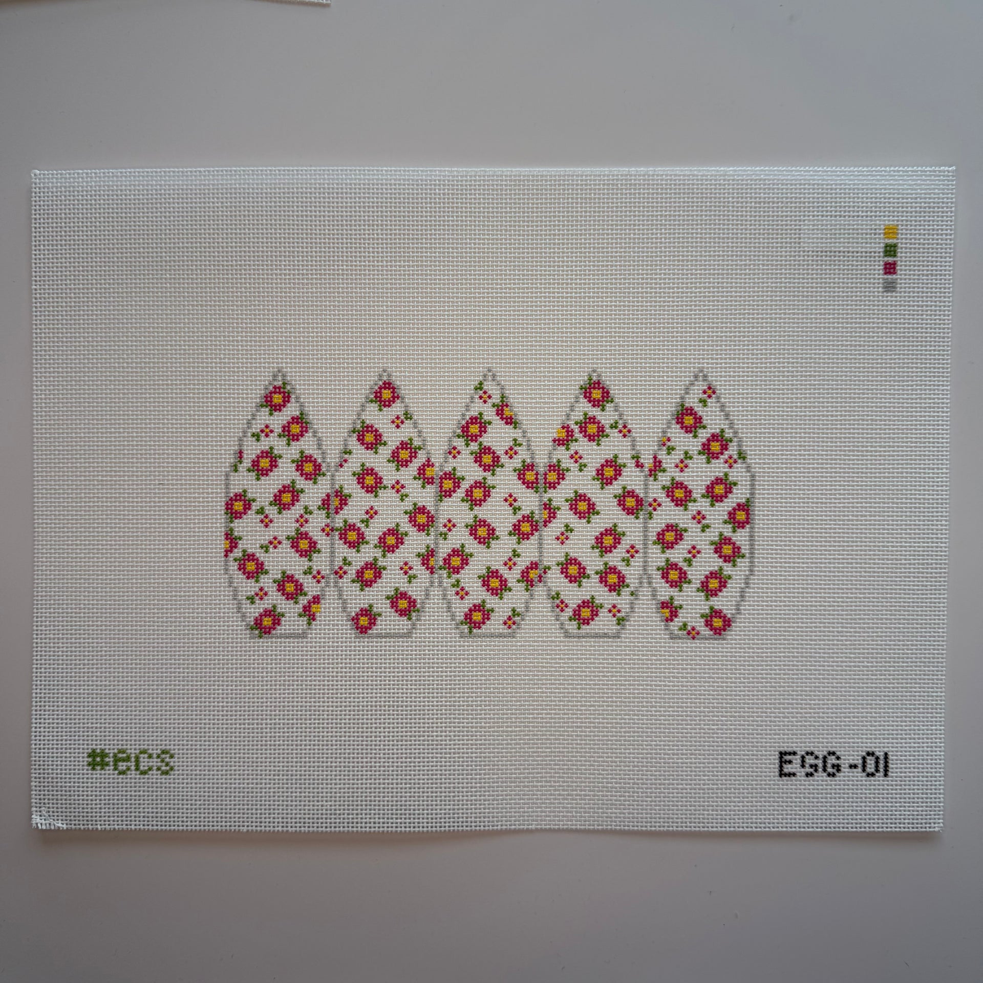 EGG-01 3D Egg Rose , 18 mesh, Handpainted by Elizabeth Crane Swartz, Design Size: 7 x 3.5"