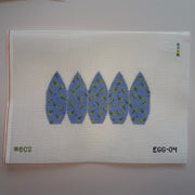 EGG-04 3D Egg Cornflower , 18 mesh, Handpainted by Elizabeth Crane Swartz, Design Size: 7 x 3.5"
