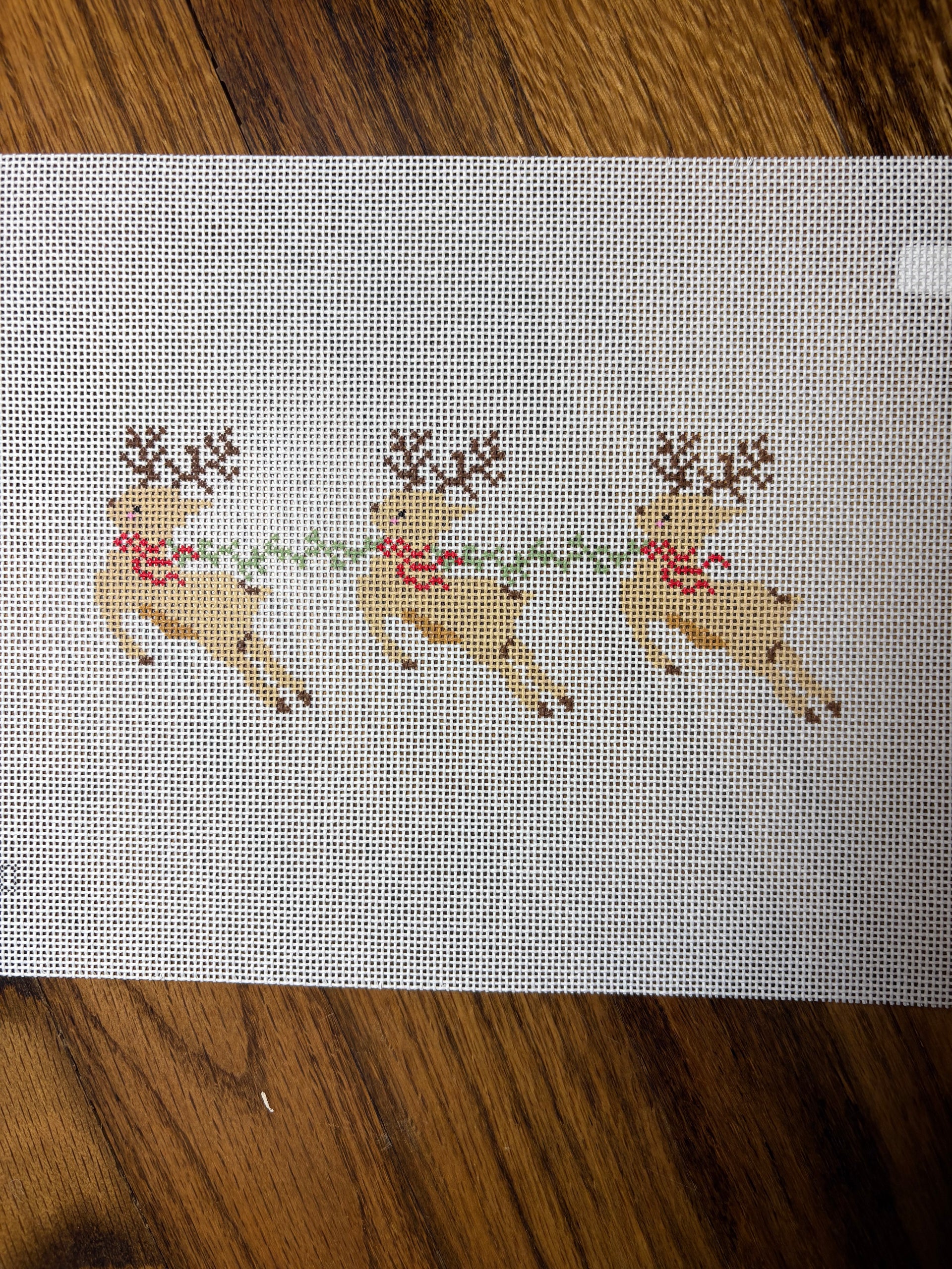 ET10 Santa's Reindeer , 18 mesh, Handpainted by Goodpoint Needlepoint, Design Size: 2.5 x 6.5"