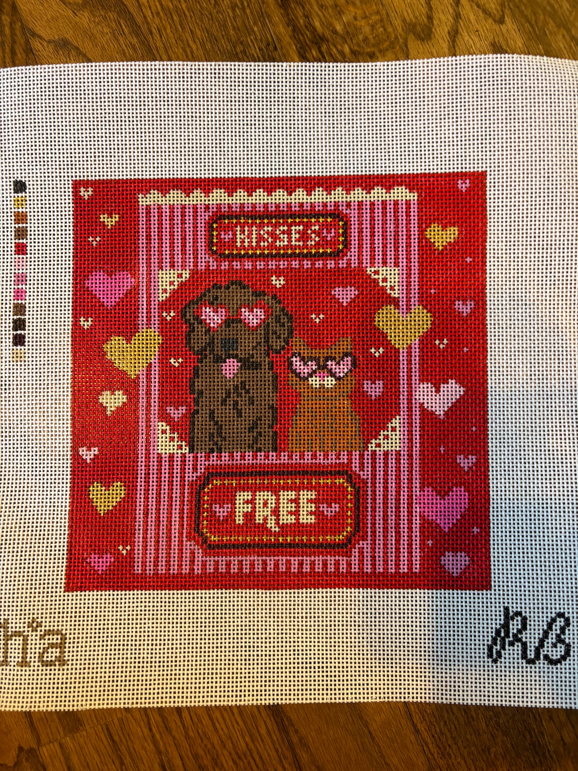 HAH-04 Free Kisses , 13 mesh, Handpainted by Rachel Barri Designs, Design Size: 8 x 8"