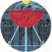 HC-O503 Big Rac Attack, 18 mesh, Handpainted by Charley Harper for The Meredith Collection, Design Size: 5" Round