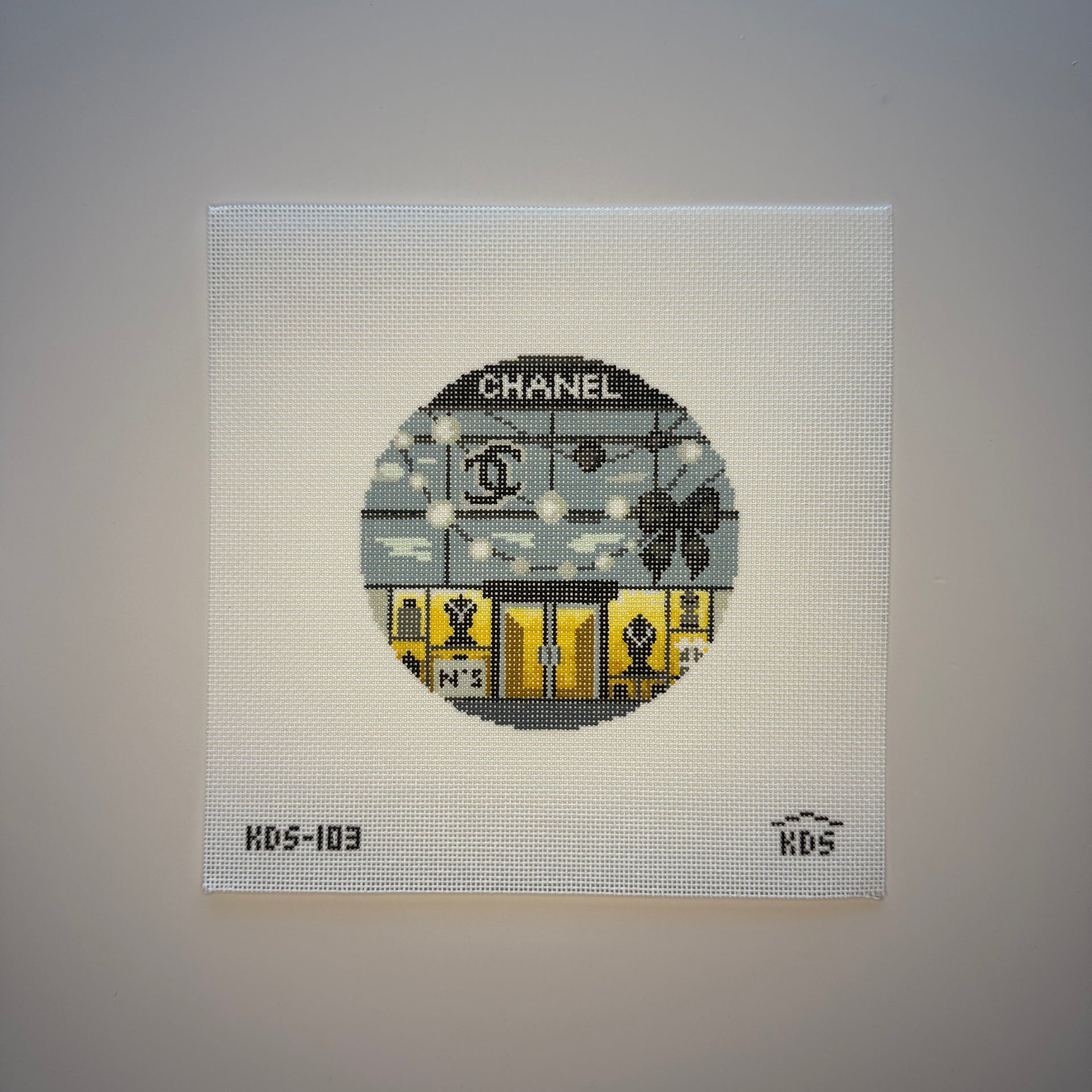 KDS-103 CC Round Storefront , 18 mesh, Handpainted by The Gingham Stitchery, Design Size: 4.5" round
