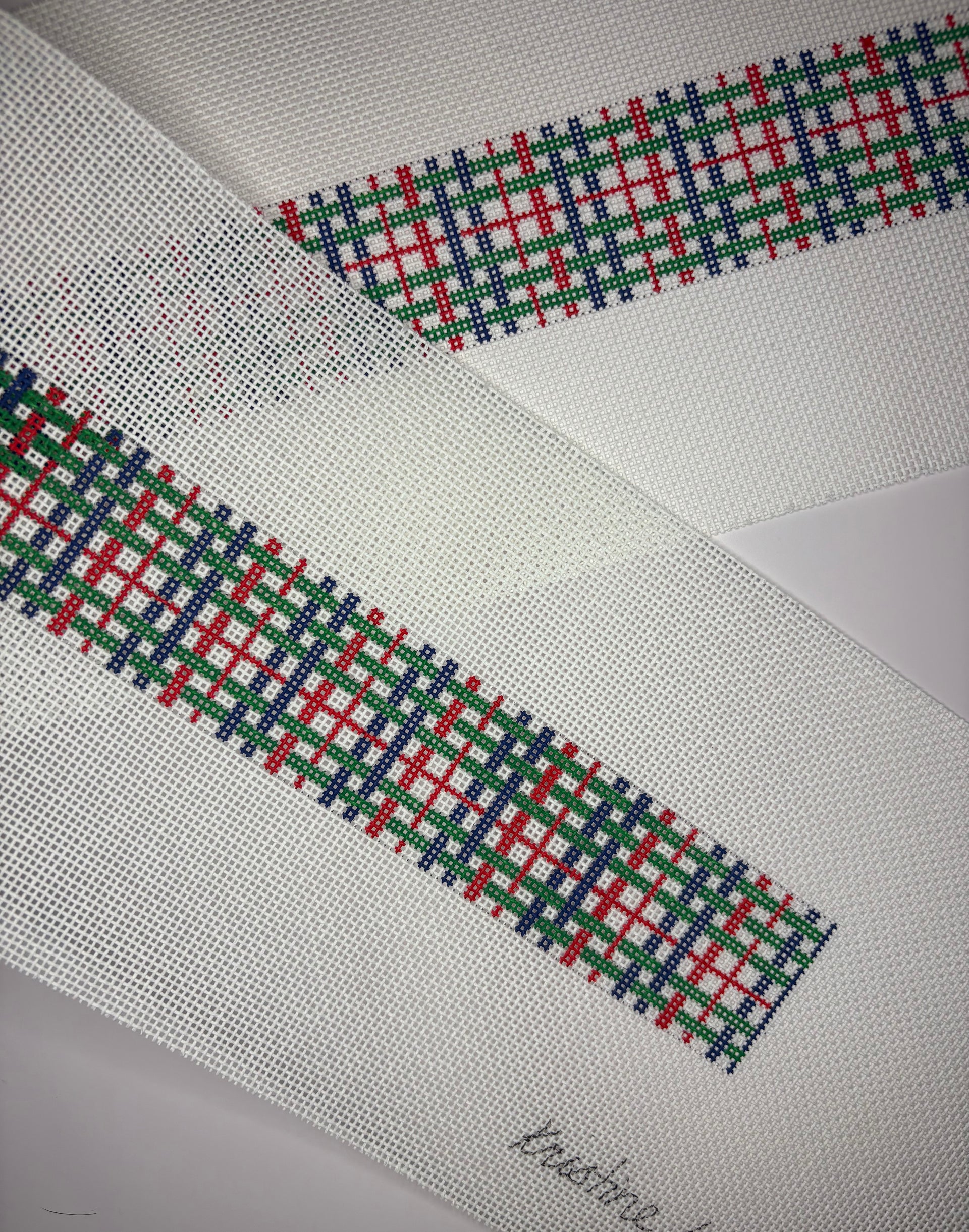 KKB539 Navy, Green and Red Plaid Belt , 18 mesh, Handpainted by Kristine Kingston for Chris Lewis Distributing, Design Size: 1.5 x 38.75"