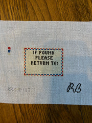 RR231-MI If Found... MKT2, 18 mesh, Handpainted by Rachel Barri Designs, Design Size: 3 x 2"