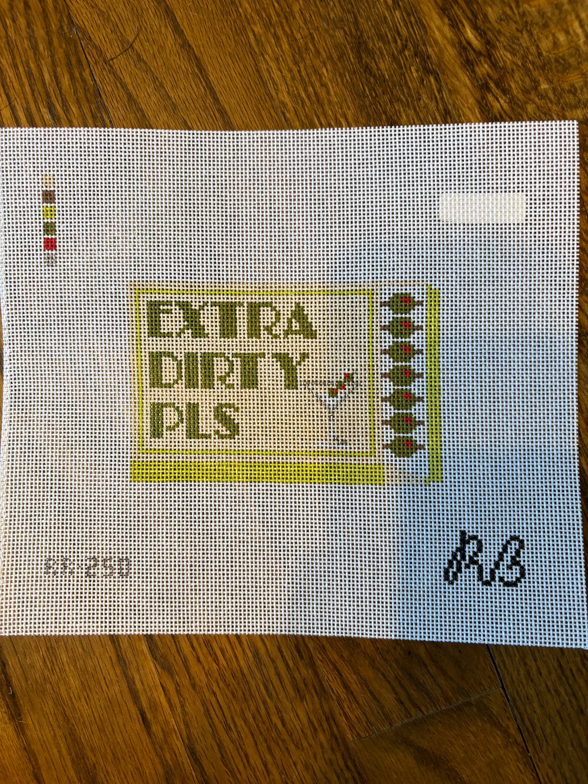 RR250 Extra Dirty Pls, 18 mesh, Handpainted by Rachel Barri Designs, Design Size: 4.5 x 2.75"