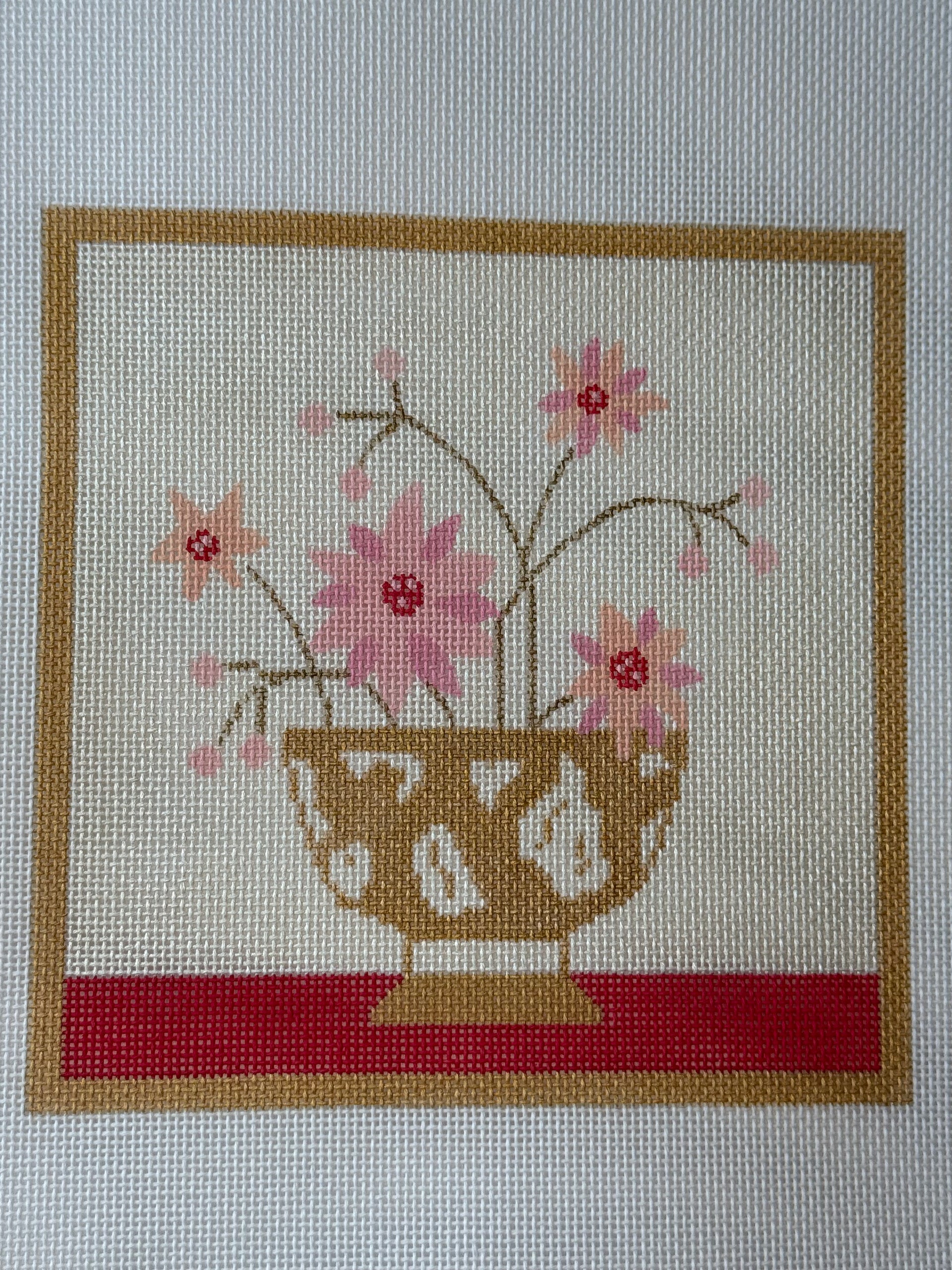 SV-032 Pink Blossoms, 18 mesh, Handpainted by Vallerie Needlepoint Gallery, Design Size: 6" square